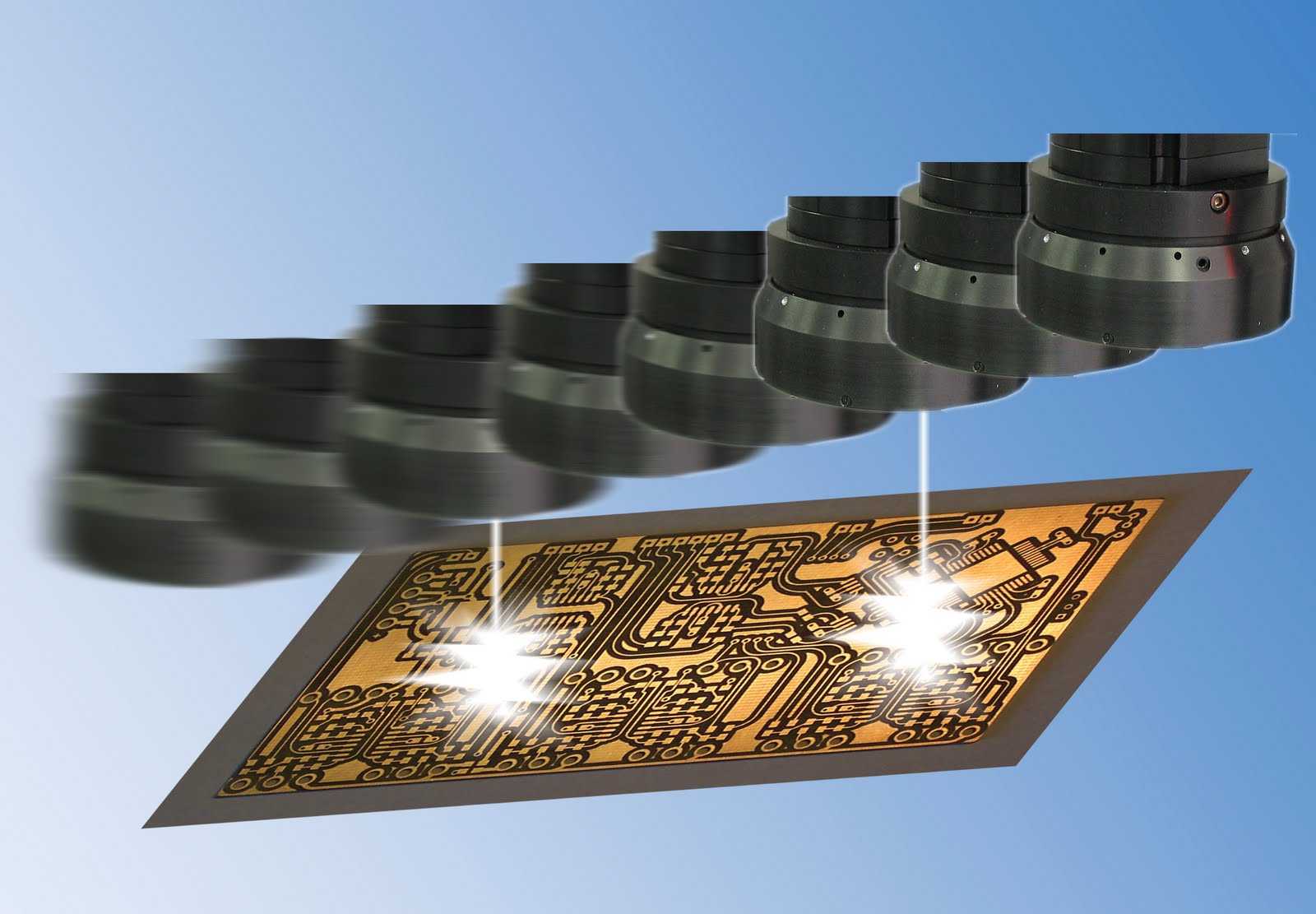 Werth, a manfacturer of optical and multi-sensor coordinate measuring machines, presents the patented “OnTheFly” method for rapid measurement with image processing. Werth ScopeCheck® and VideoCheck® coordinate measuring machines can now take measurements while in constant motion. By flashing the light sources, blurriness due to the motion is eliminated. Start-Stop operation is no longer needed. Measurement time is drastically reduced (up to a factor of 10) and the efficiency of the measuring machine is increased. This technology is ideal for printed circuit boards or other workpieces with numerous features and the need for short inspection cycles.